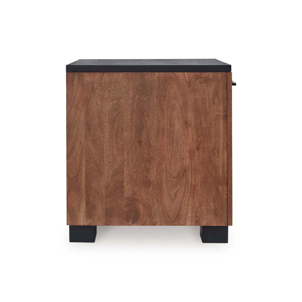 • Two-tone finish (medium warm brown wood tone and matte black)
