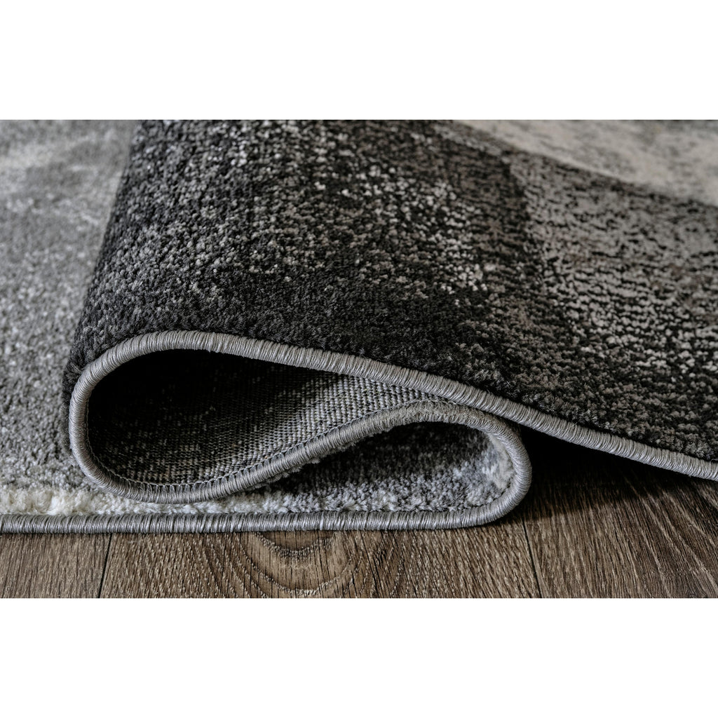 This area rug features a striking abstract design in black, gray and cream. Its ethereal look dresses up a room... This area rug features a striking abstract design in black, gray and cream. Its ethereal look dresses up a room with subtle color, visual texture and a highly contemporary point of view. View more