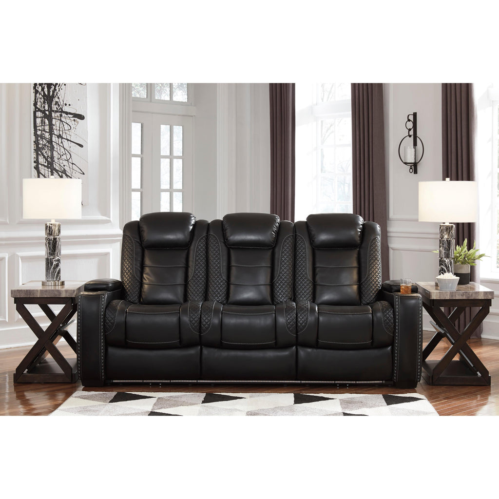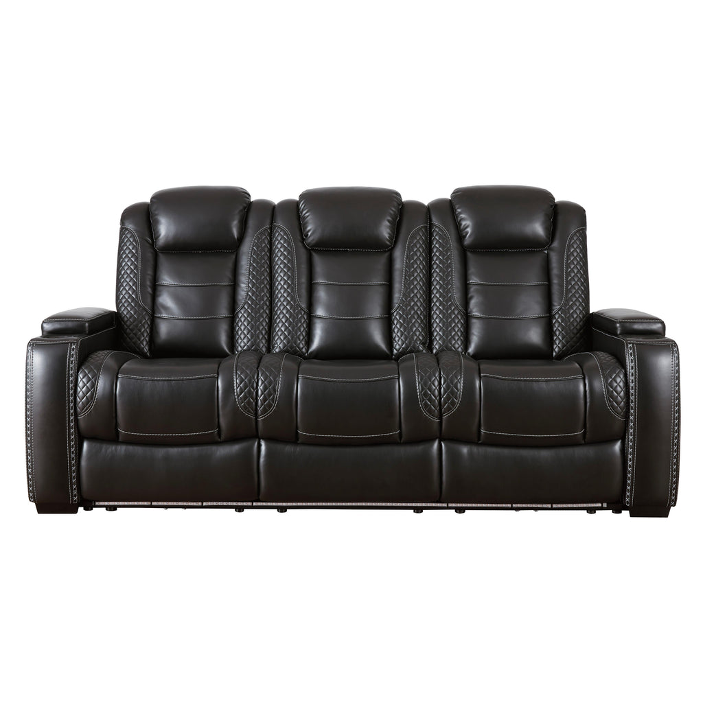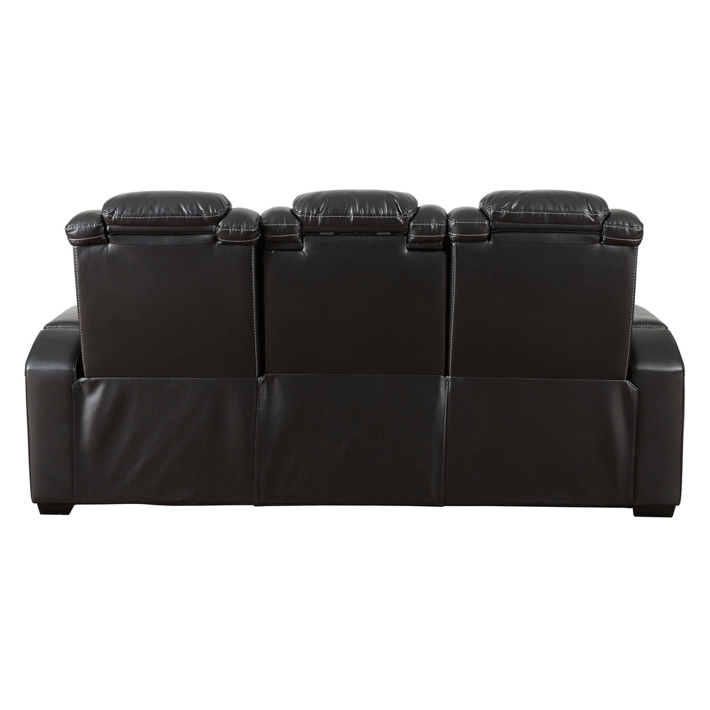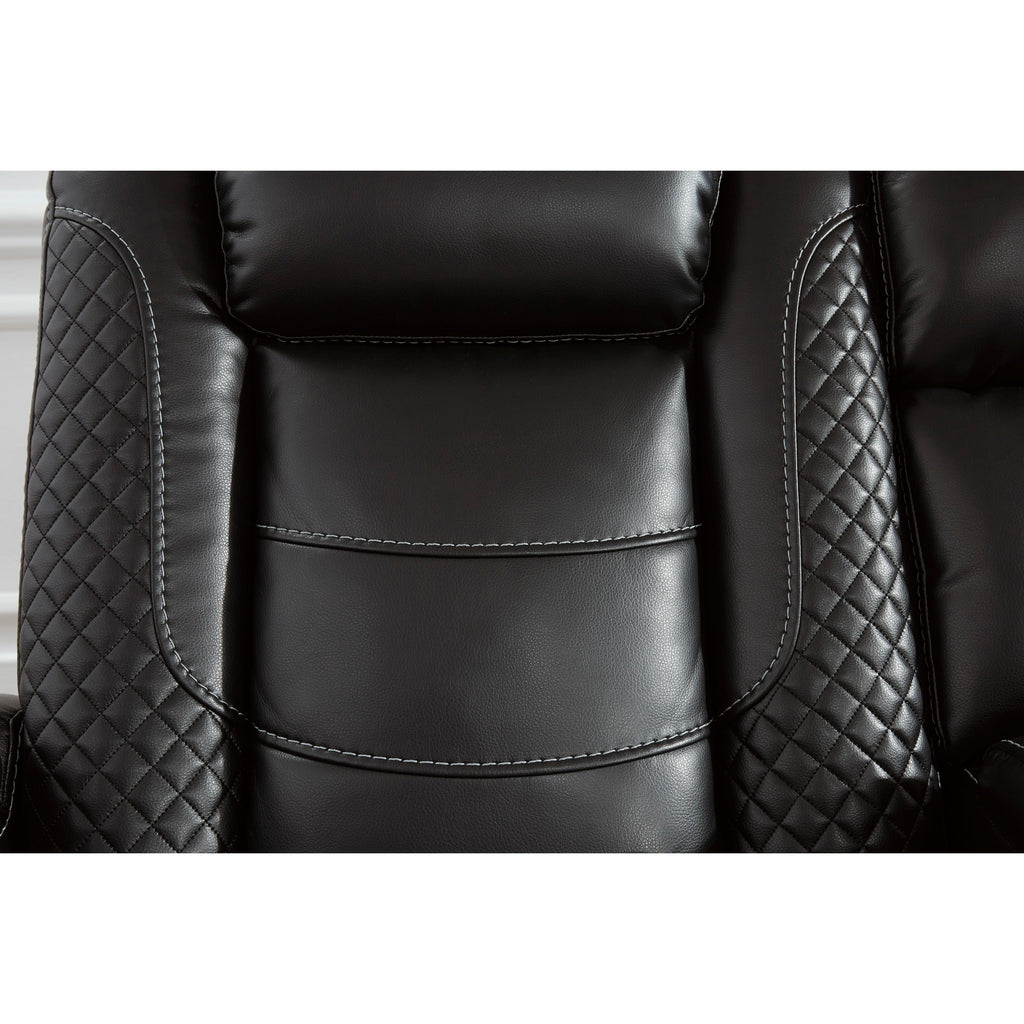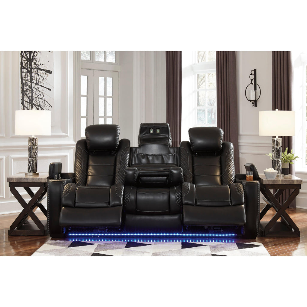 Calgary Furniture Emporium Party Time Power Reclining Leather Look Loveseat with Console 3700318C