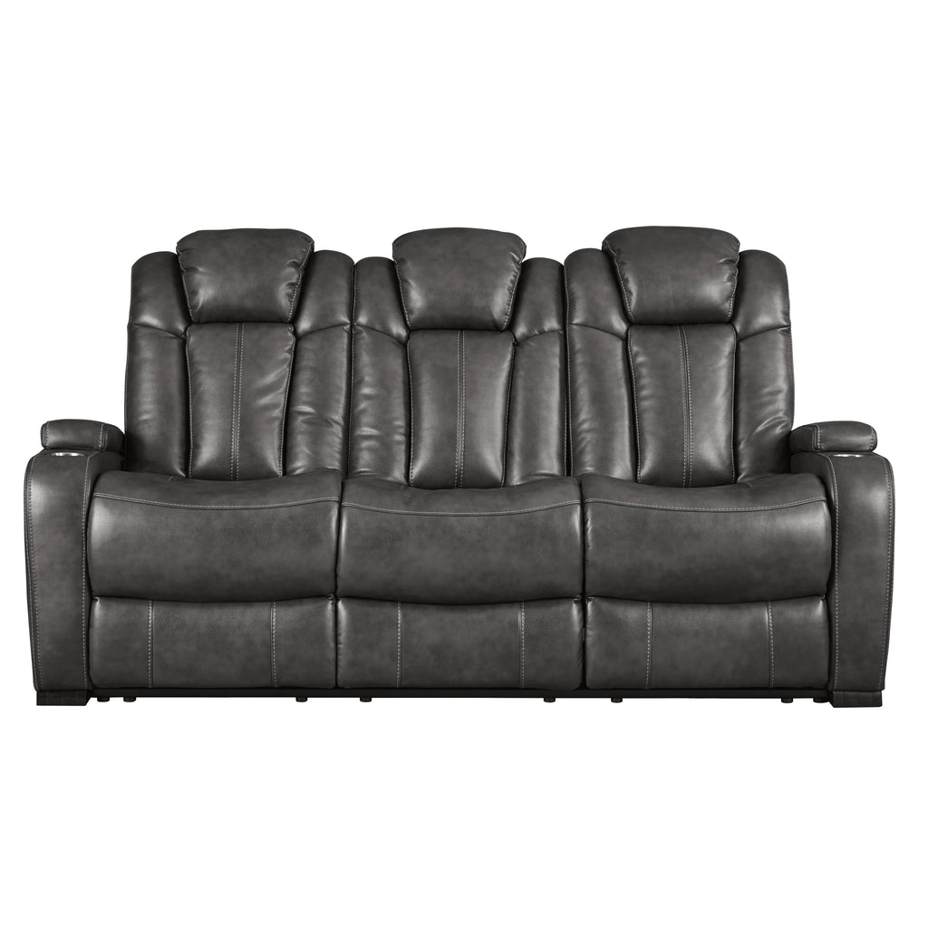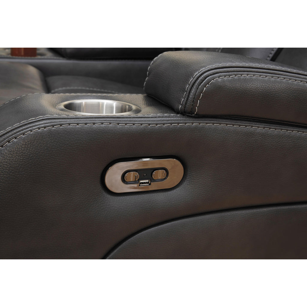 Calgary Furniture Emporium Turbulance Power Reclining Leather Look Loveseat with Console 8500118C