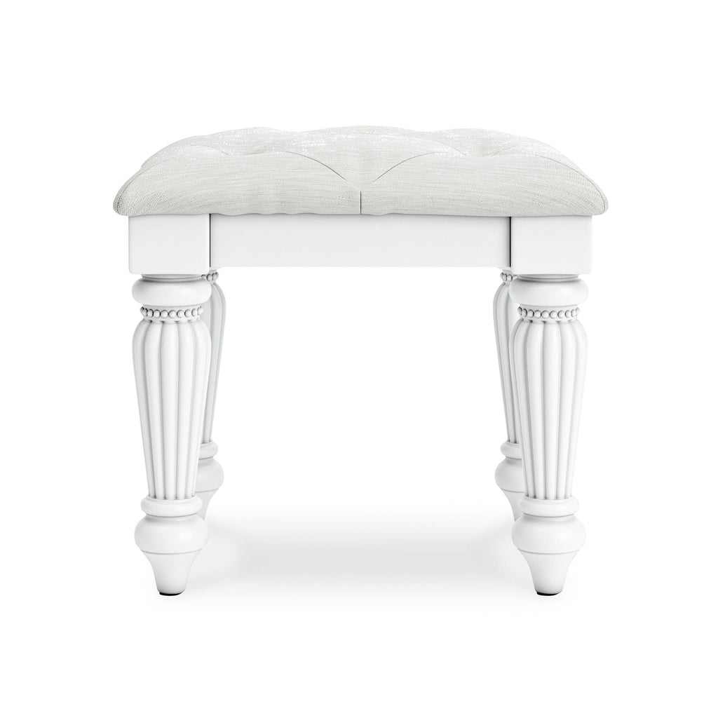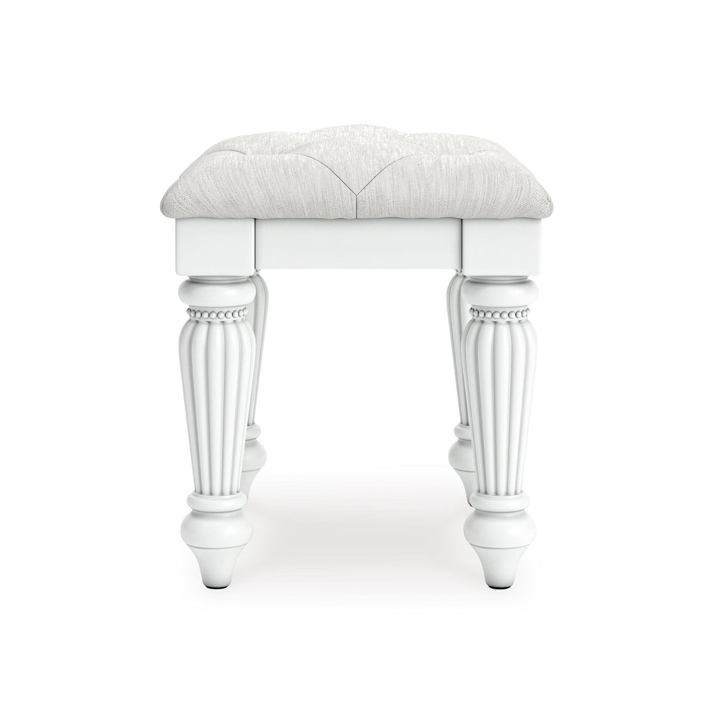 Fit for a princess. This vanity stool’s crisp matte white finish pairs with charming elements like turned legs, ornate beading... Fit for a princess. This vanity stool’s crisp matte white finish pairs with charming elements like turned legs, ornate beading and sumptuous button-tufted upholstery—perfect for your girly girl. This piece's crowning touches are sure to make your little one feel like royalty. View more